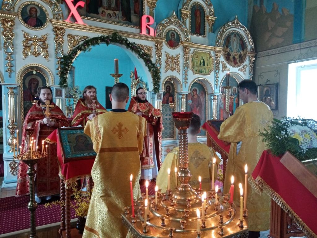 Во время богослужения были прочитаны сугубые прошения и молитва «Об избавлении от губительного поветрия», а так же молитва «О восстановлении мира».
