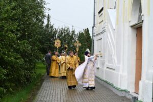 За богослужением главе Брянской митрополии сослужили благочинный Брянского градского церковного округа протоиерей Сергий Рысин, благочинный Севского церковного округа, настоятель Петропавловского храма протоиерей Владимир Сафронов, и.о. благочинного Навлинского церковного округа иерей Тимофей Учватов, настоятель храма в честь иконы Божией Матери «Взыскание погибших» села Шведчики иерей Михаил Чистиков.