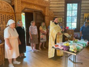 19 августа 2023 года, в праздник Преображения Господа Бога и Спаса нашего Иисуса Христа, благочинный Навлинского церковного округа иерей Тимофей Учватов совершил праздничный водосвятный молебен в храме святителя Николая урочища Бартынь.