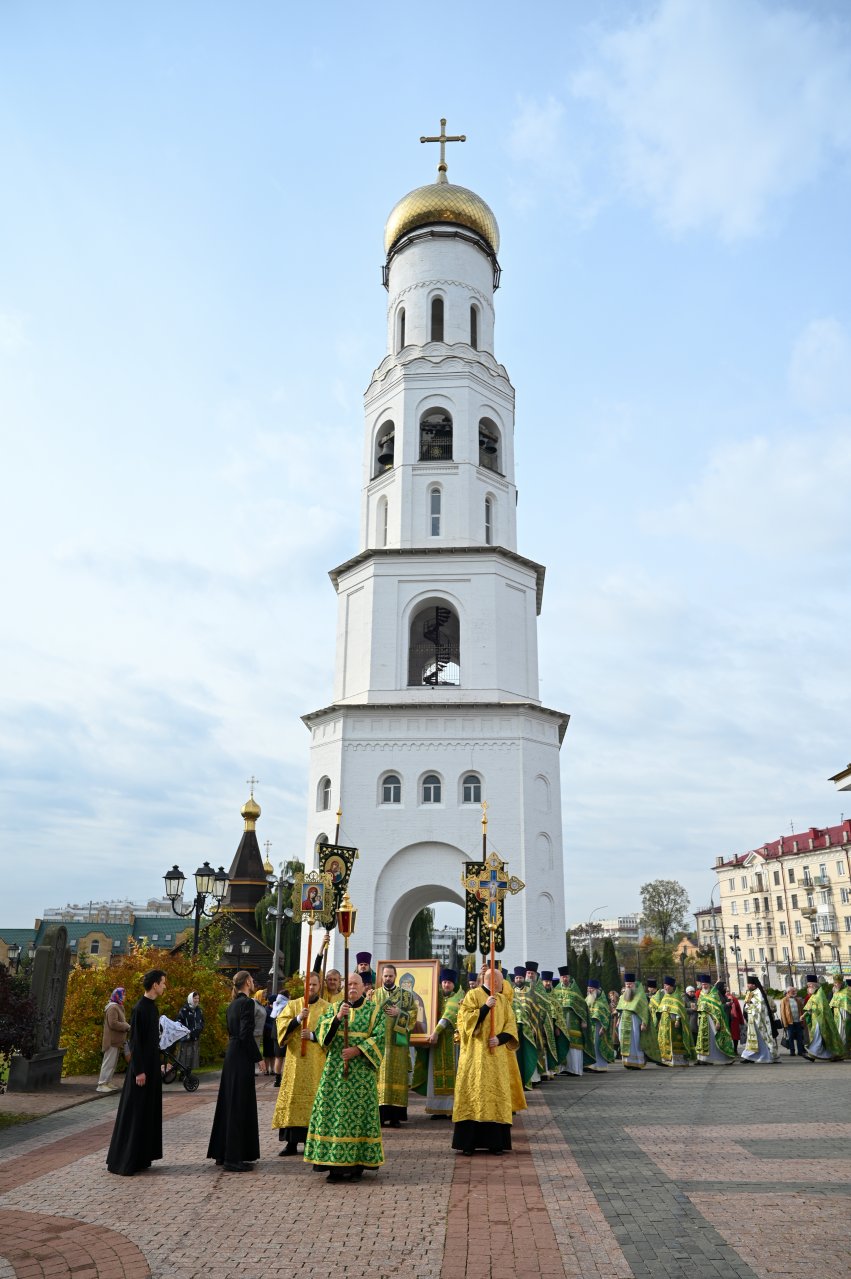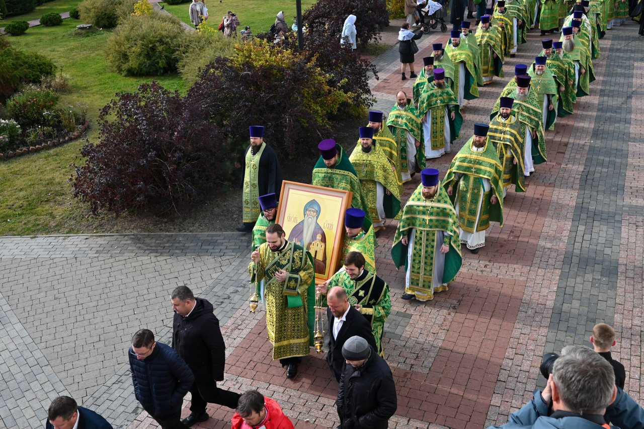 По окончании Литургии с иконой святого благоверного князя Олега был совершен праздничный крестный ход вокруг главного епархиального храма. В завершение молитвенного шествия у раки с честными мощами небесного заступника Брянщины митрополит Александр вознес молитву.