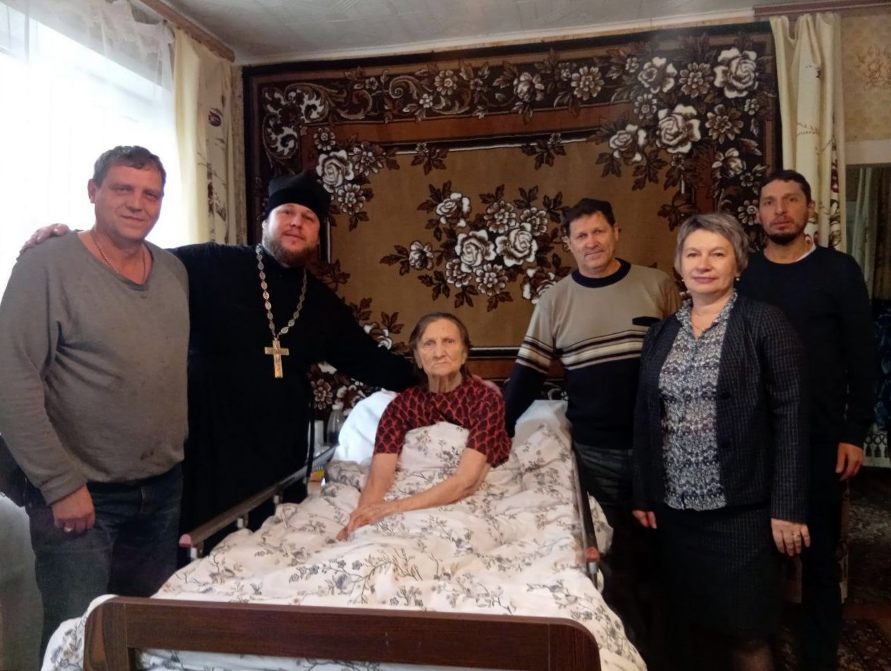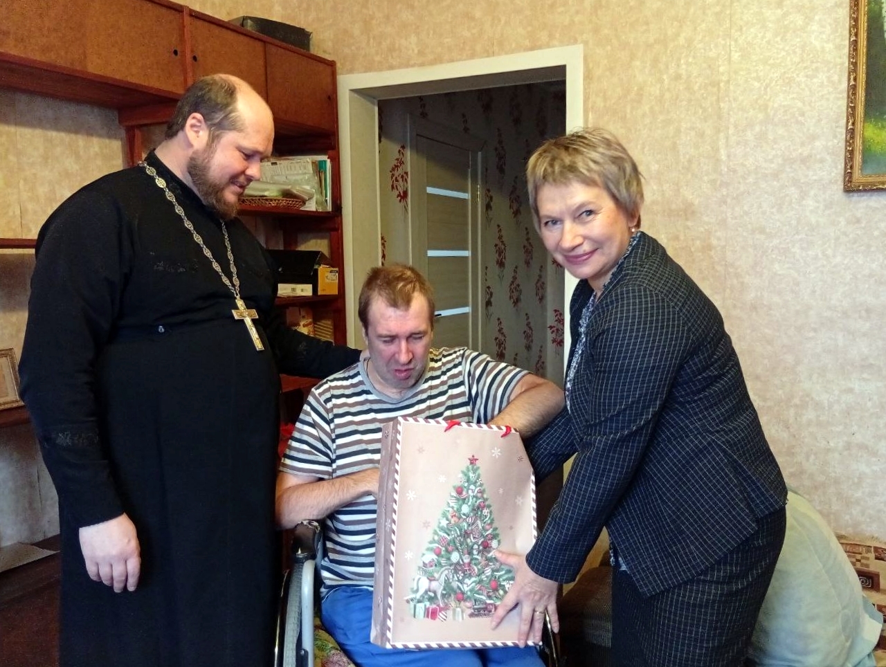 Не остались без внимания и те, кто находится на надомном обслуживании. Заведующая отделением социального обслуживания на дому граждан пожилого возраста и инвалидов Галина Ивановна Коржова и настоятель храма в честь Владимирской иконы Божией Матери села Алешинка иерей Сергий Цыбин навестили людей с ограниченными возможностями здоровья, так же вручили им подарки, тем самым подарив частичку заботы и тепла.