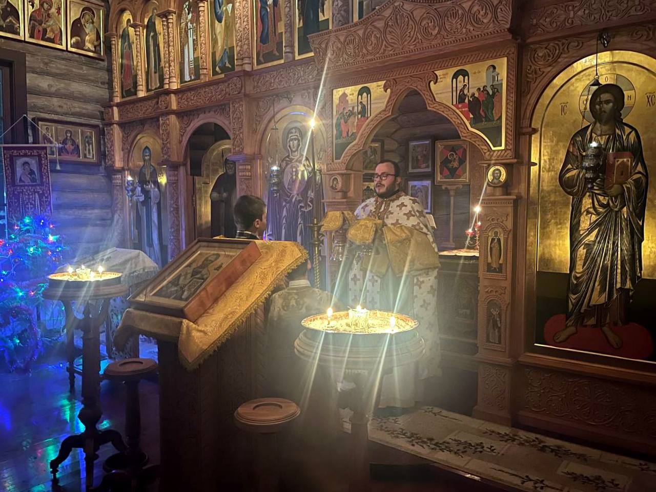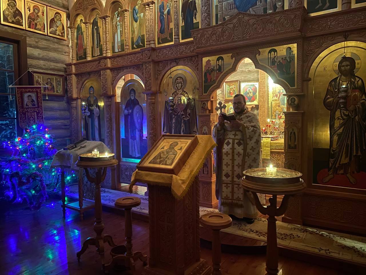В ночь на гражданский Новый год, с 31 декабря 2025 года на 1 января 2026-го, день памяти мученика Вонифатия, настоятель храма и благочинный Навлинского церковного округа иерей Тимофей Учватов совершил Божественную литургию и молебен на новолетие в храме в честь святителя Николая, архиепископа Мир Ликийских, чудотворца урочища Бартынь.
