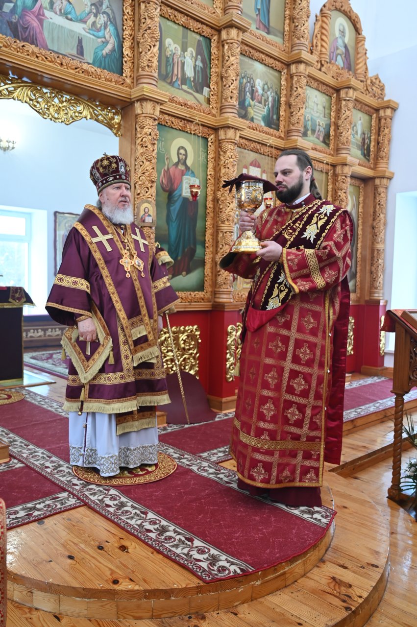 Его Высокопреосвященству за Литургией сослужили секретарь Брянской епархии протоиерей Павел Чикалин, благочинный Брасовского церковного округа, настоятель храма во имя новомучеников и исповедников Российских п. Локоть протоиерей Владимир Сафронов, благочинный Навлинского церковного округа, настоятель храма в честь Казанской иконы Божией Матери п. Навля иерей Тимофей Учватов, клирик храма в честь Преображения Господня г. Дятьково иерей Андрей Толкачев.