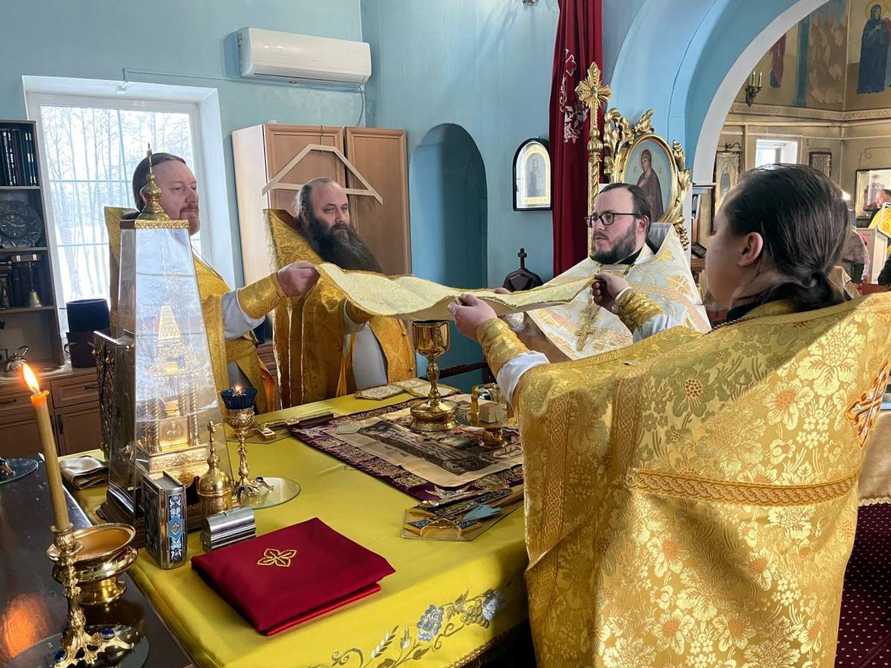 Служение Божественной литургии возглавил настоятель храма, благочинный Навлинского церковного округа иерей Тимофей Учватов. Его преподобию сослужили: настоятель храма в честь Покрова Пресвятой Богородицы п. Алтухово иерей Олег Цыбанков; настоятель храма в честь Успения Пресвятой Богородицы с. Пролысово иерей Димитрий Ребиченко и клирик Казанского храма иерей Владимир Третьяков.