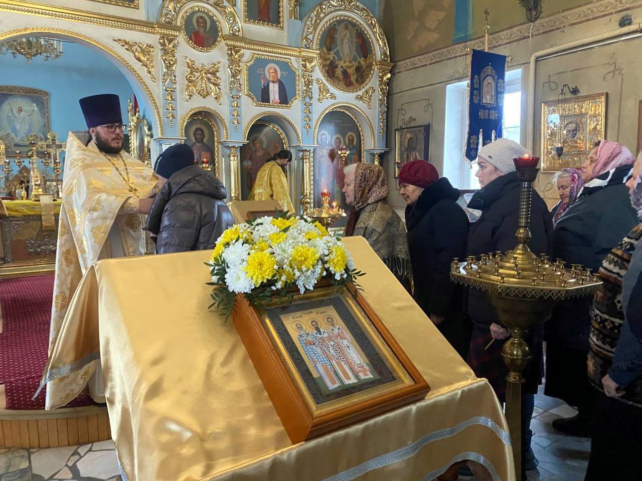 По окончании Божественной литургии был совершен молебен трем празднуемым великим учителям и святителям, священник Тимофей прочел молитву святым.
