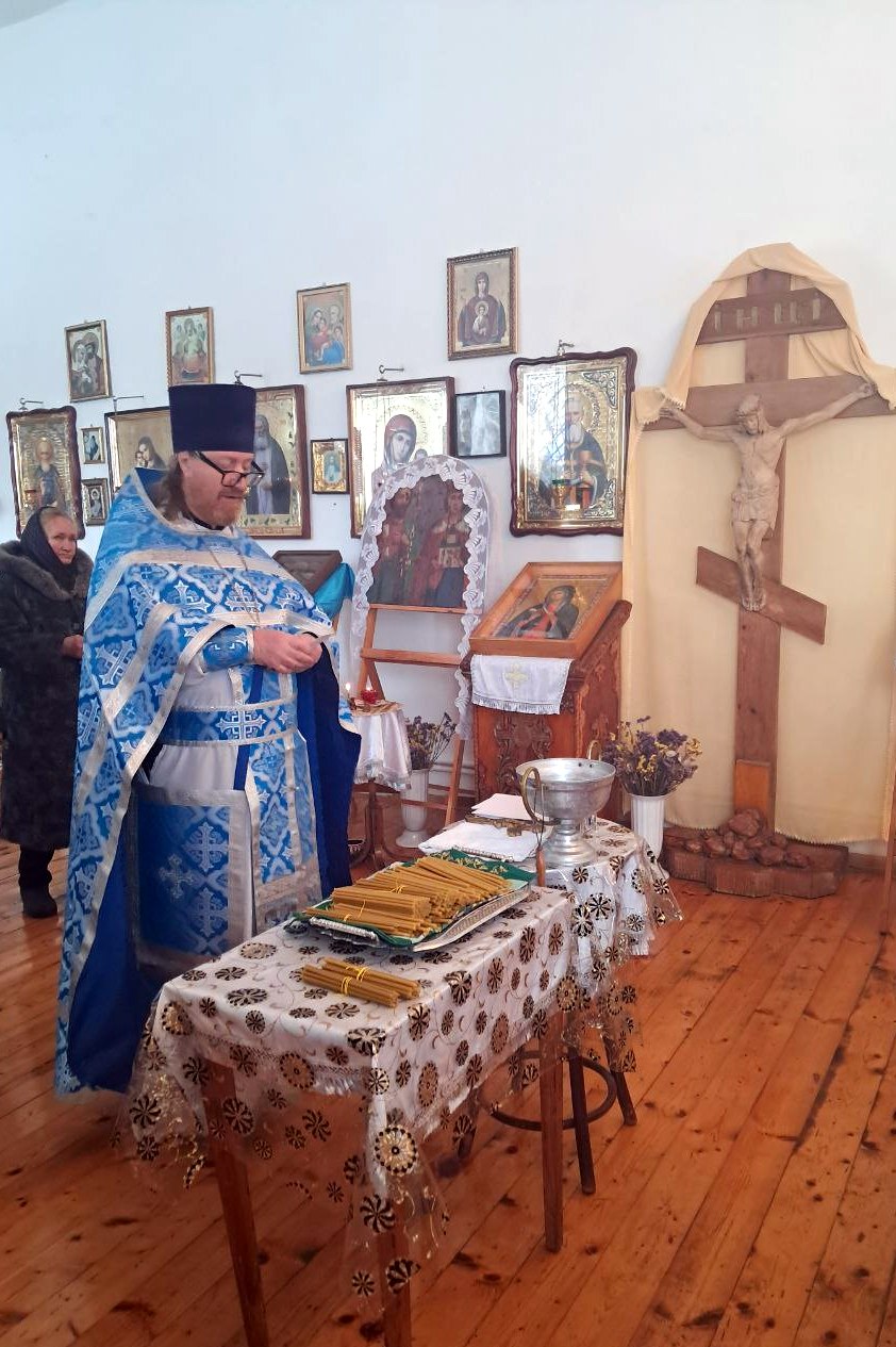 По окончании Божественной литургии был совершен праздничный молебен и Чин освящения свечей на Сретение, после чего священник обратился ко всем присутствующим с пастырским словом.