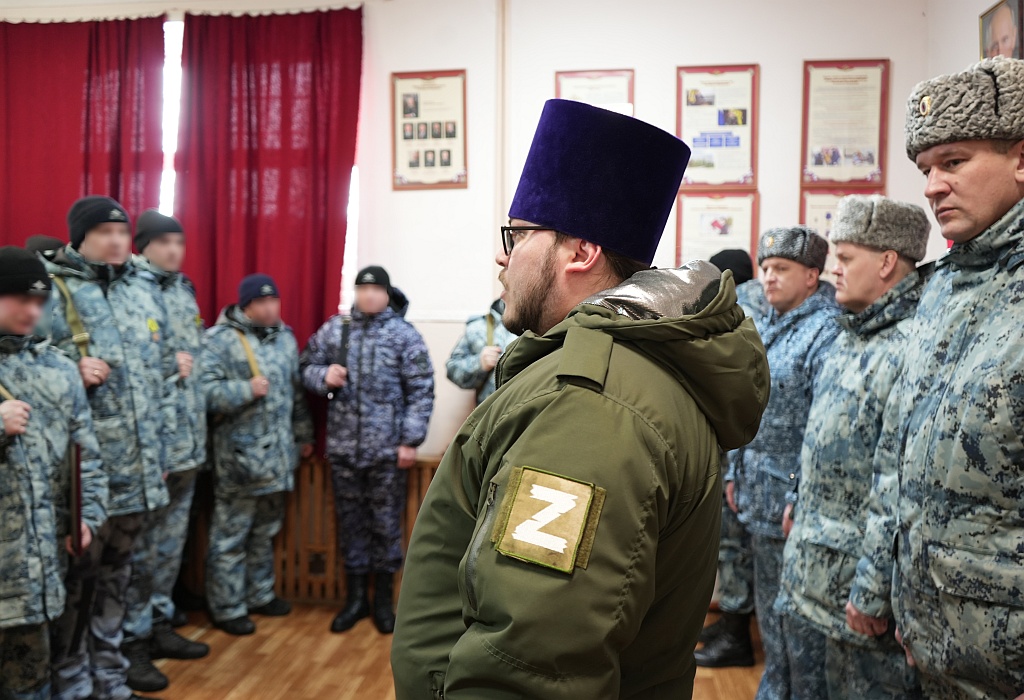 18 февраля 2026 года, в преддверии Дня защитника Отечества, по благословению митрополита Брянского и Севского Александра, священник Брянской епархии по взаимодействию с УМВД России по Брянской области иерей Тимофей Учватов принял участие в торжественном построении сводного отряда полиции Брянской области находящимся на боевом дежурстве в приграничье.