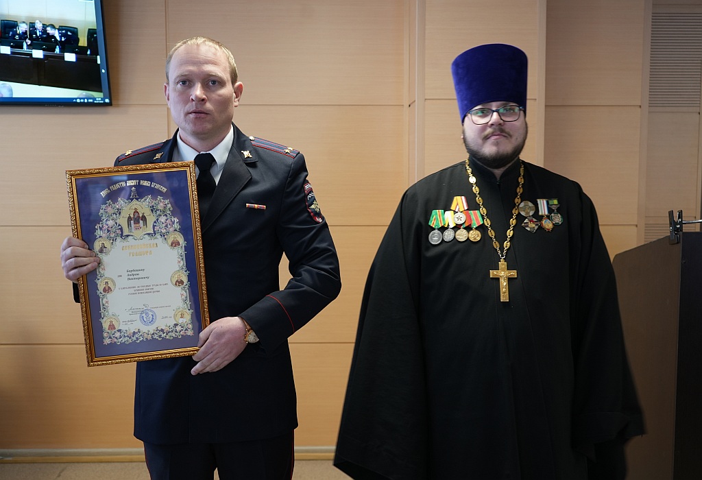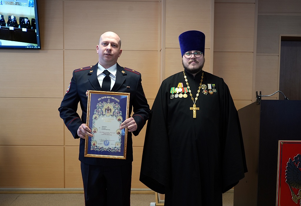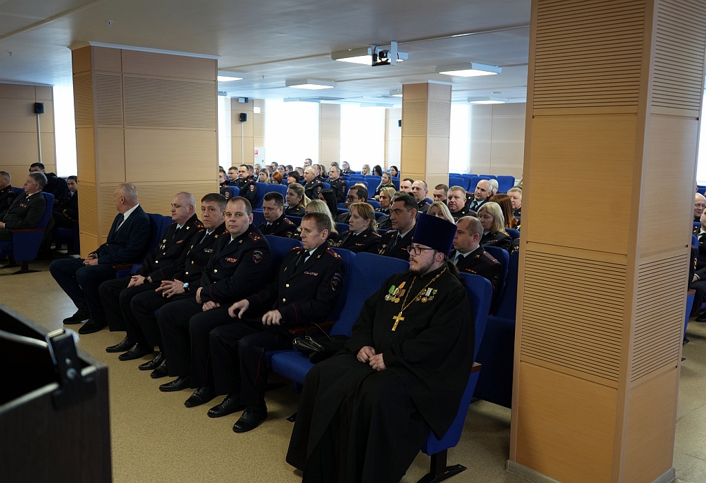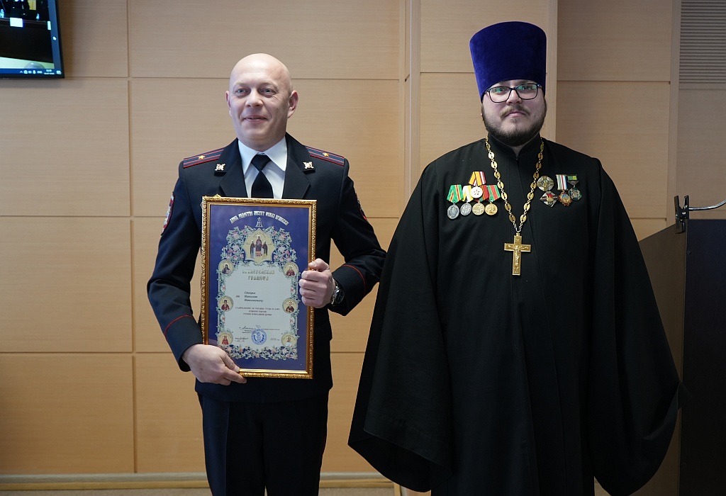 От имени митрополита Брянского и Севского Александра священник Брянской епархии по взаимодействию с УМВД России по Брянской области иерей Тимофей Учватов обратился с поздравительным словом, в котором поздравил всех с Днем защитника Отечества. Священник выразил признательность сотрудникам УМВД России по Брянской области за их важный и ответственный труд по соблюдению интересов граждан и государства. Отец Тимофей пожелал всем крепкого здоровья, мира и семейного благополучия. За добросовестное выполнение служебных обязанностей и достигнутые высокие показатели в служебной деятельности священнослужитель вручил Архиерейские награды.
