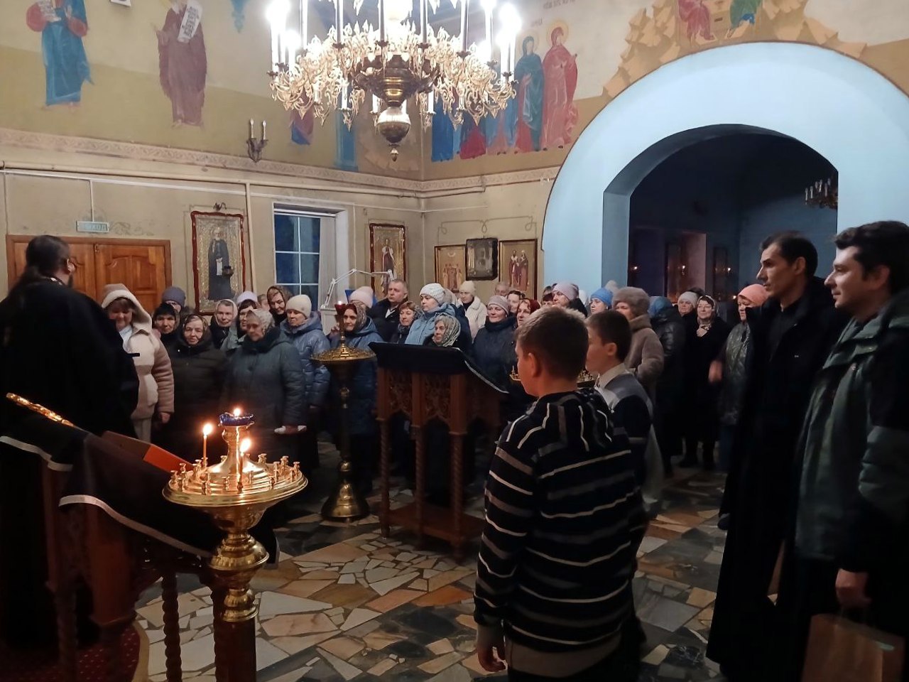 Вечером 23 февраля 2026 года, в понедельник первой седмицы Великого поста, в День защитника Отечества прихожане тепло поприветствовали своего настоятеля и благочинного Навлинского церковного округа иерея Тимофея Учватова, который является военным священником Брянской епархии, пожелали ему мира, здравия, долгоденствия и неоскудевающей помощи Божией и Ангела Хранителя во всех поездках к нашим воинам, несущим свое служение на линии боевого соприкосновения.