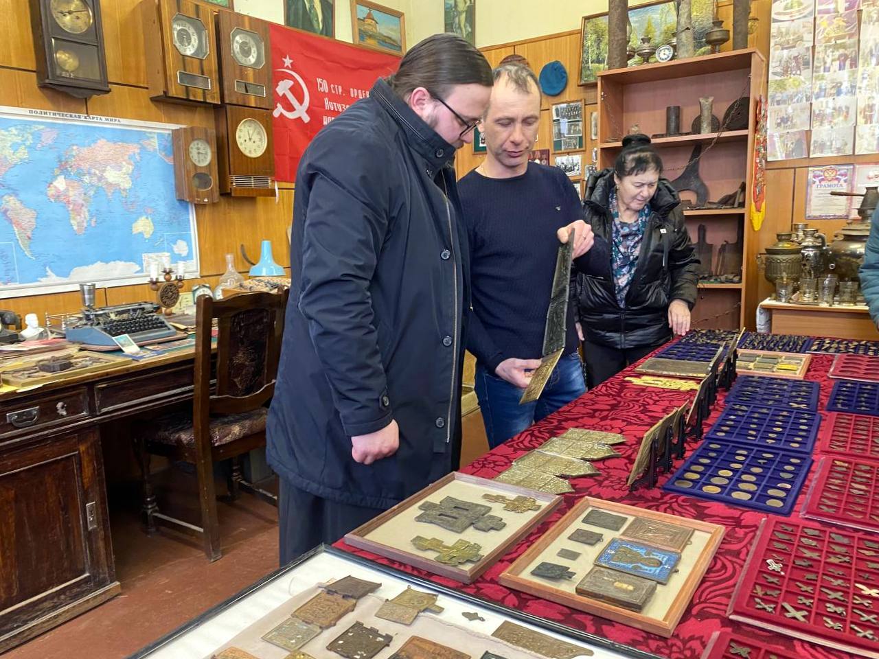 25 февраля 2026 года, благочинный Навлинского церковного округа иерей Тимофей Учватов, совместно с участниками клуба «Активное долголетие» и инклюзивного клуба «инкЛюди» комплексного центра Навлинского района, совершили увлекательное путешествие в прошлое, посетив уникальный личный музей навлинца Александра Ивановича Пунина. Александр Иванович — депутат Навлинского поселкового Совета и представитель компании «Ростелеком». Но, помимо этого, он еще и коллекционер — уже более десяти лет по крупицам собирает свою удивительную коллекцию.