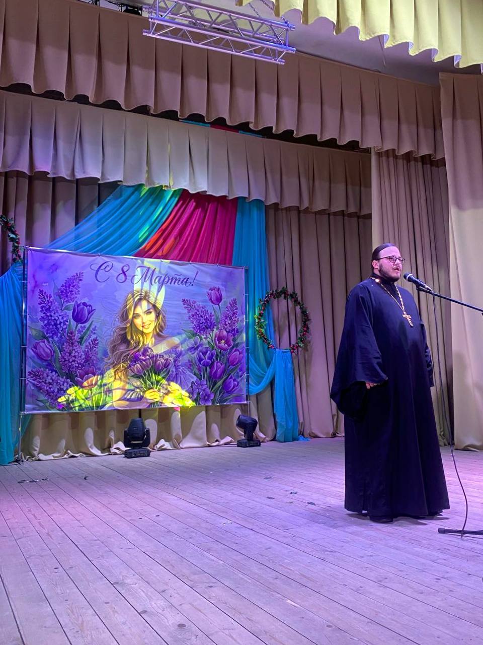 6 марта 2026 года, благочинный Навлинского церковного округа иерей Тимофей Учватов принял участие в торжественном мероприятии, посвященном Международному женскому дню, который состоялся в Навлинском Доме культуры.