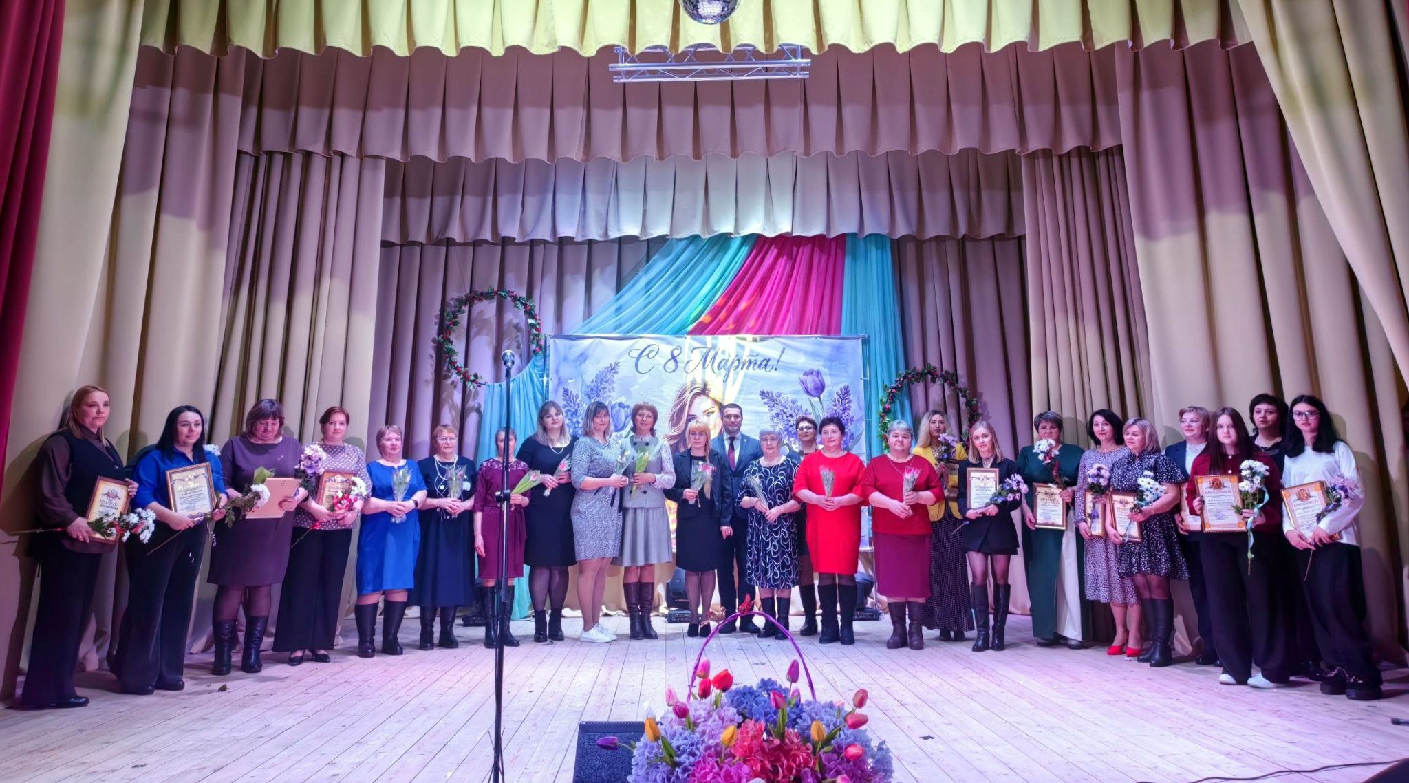Руководство района поздравляло женщин с самым нежным и весенним праздником, желая мира и добра. В ходе праздника была проведена церемония награждения. Творческие коллективы района дарили всем присутствующим свои концертные номера, делая праздник ещё более ярким.