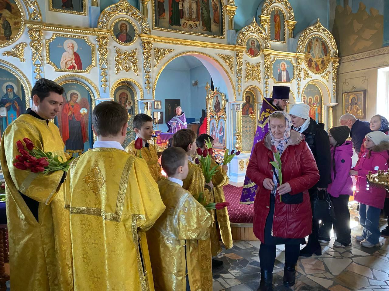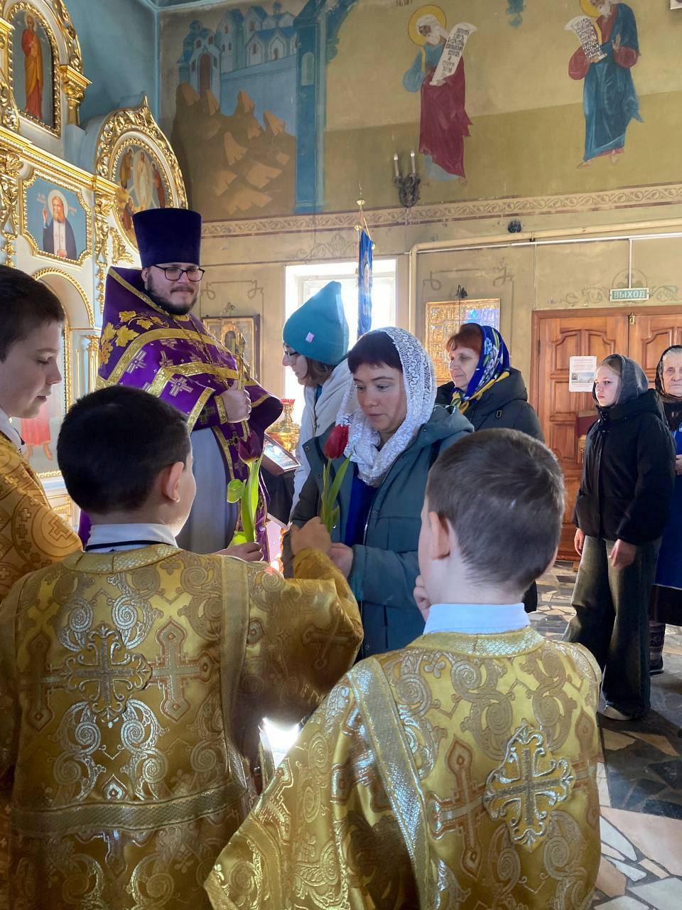 По окончании богослужения отец Тимофей обратился ко всем присутствующим с пастырским словом и поздравил всех присутствующих женщин с началом весны.