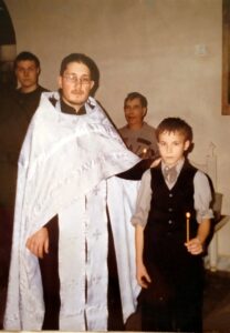 Спустя примерно год я сдружился с детьми ректора духовного училища, настоятеля Предтеченского храма протоиерея Александра Пелина, и по его благословению был приглашен в алтарь помогать на службах, готовить и подавать кадило, выходить со свечами. Мне тогда даже выдали стихарь, хотя у многих его не было.