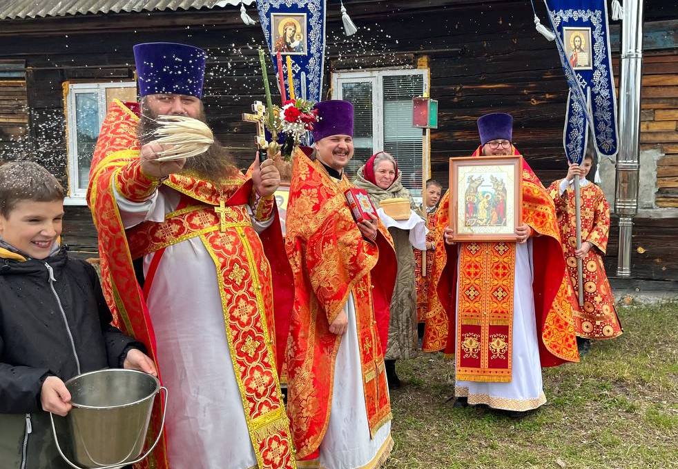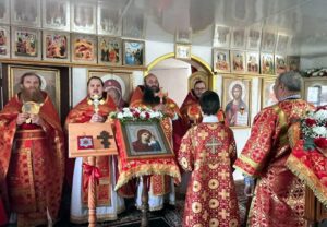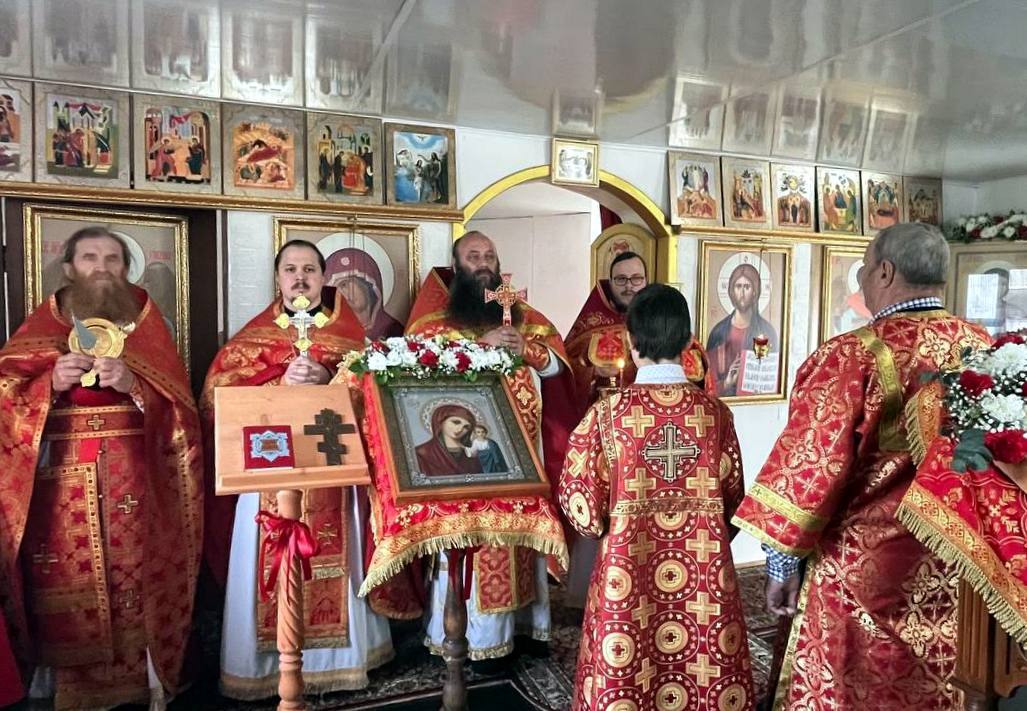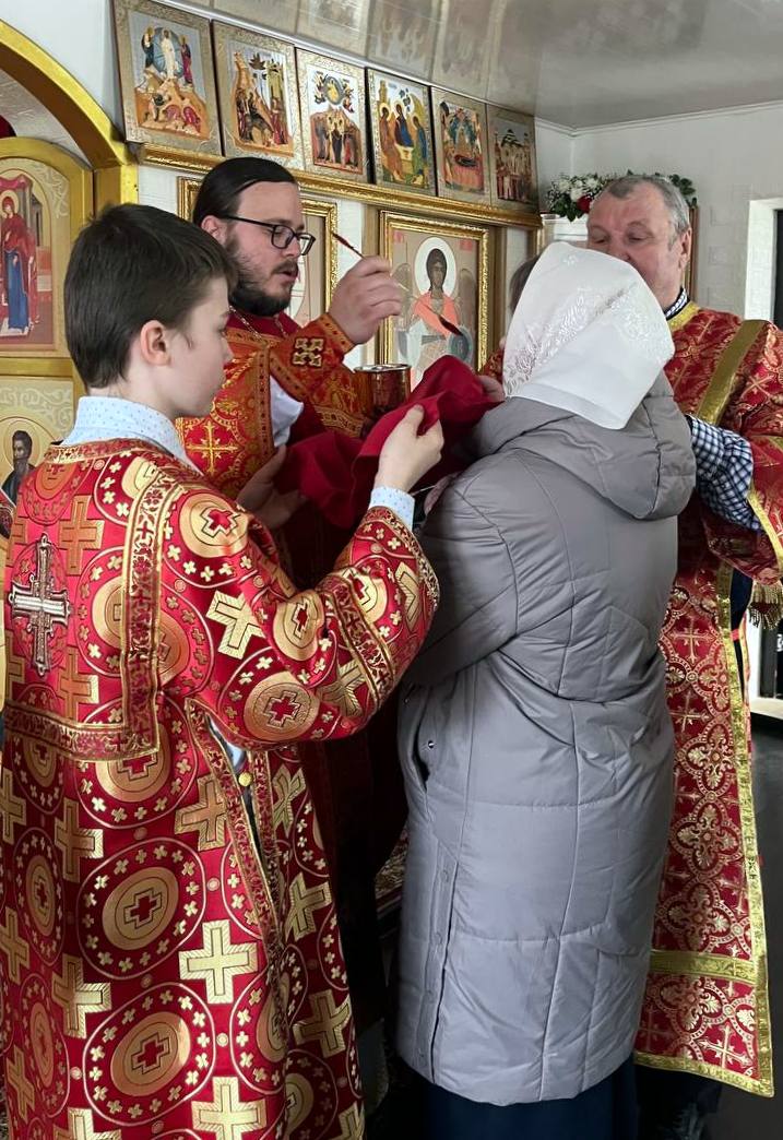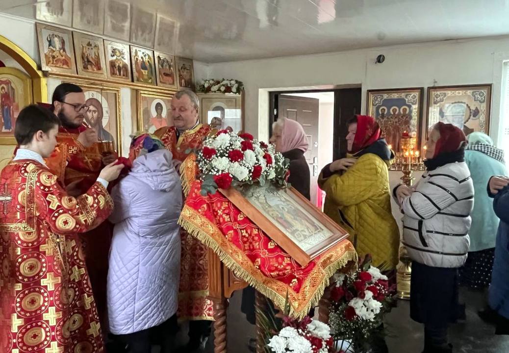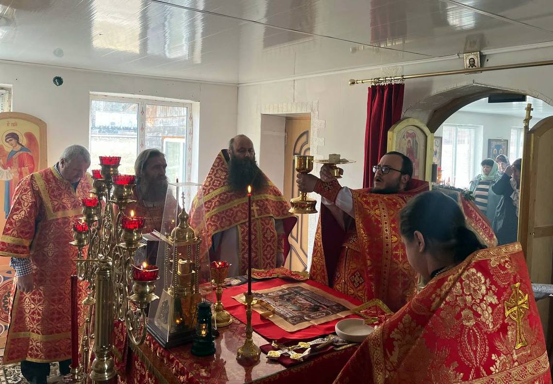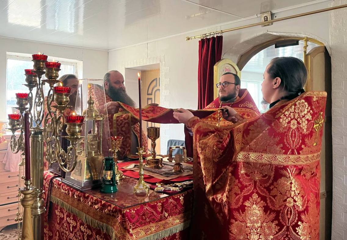Его Преподобию сослужили: настоятель храма в честь Покрова Пресвятой Богородицы п. Алтухово иерей Олег Цыбанков, настоятель храма в честь Рождества Пресвятой Богородицы с. Соколово иерей Михаил Мелюхин и настоятель храма во имя святого мученика Трифона Апамейского Никейского п. Клюковники иерей Димитрий Ребиченко. Во время богослужения были прочитаны сугубые прошения и молитва о Святой Руси.